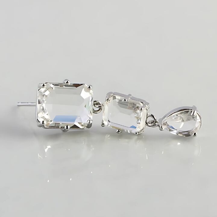 シンプルで洗練された印象を与える、オールクリア × シルバーカラーの3連ピアス